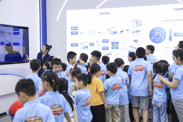 宣传片观看结束后,孩子们最期待的展厅探秘环节正式开始。在讲解员和志愿者的带领下,孩子们步入了展厅,沉浸式感受科技的魅力。讲解员用生动易懂的语言,结合香港大学志愿者们的实物操作演示,将复杂的锂电池检测技术、新能源汽车充电技术讲述得妙趣横生、直白易懂。孩子们兴致勃勃,认真聆听讲解。